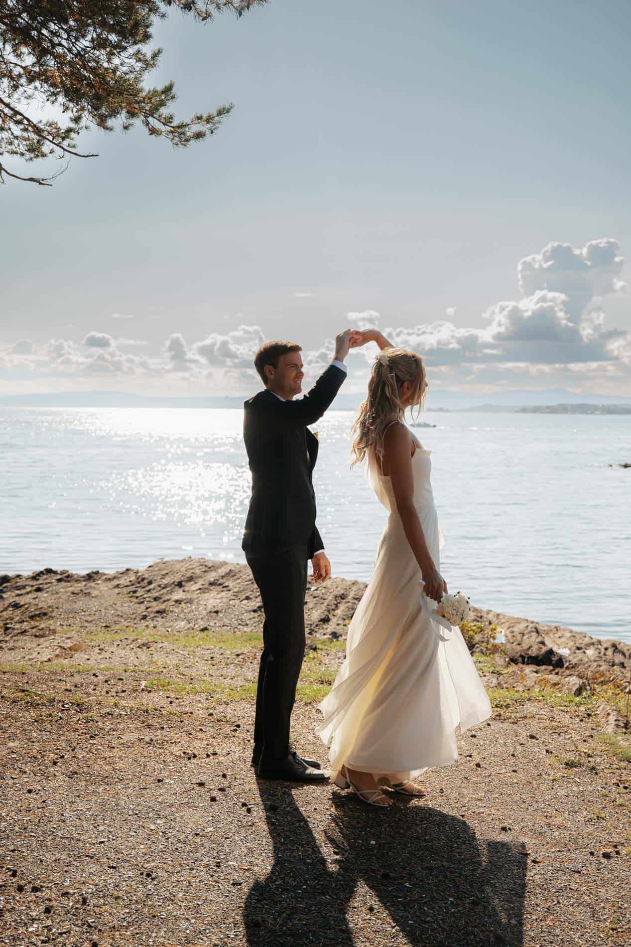 Huk er kanskje det stedet i Oslo jeg har mest hjerte for som bryllupsfotograf. Her møter fjorden land på en måte som gir bildene et åpent, luftig preg som aldri går av moten.