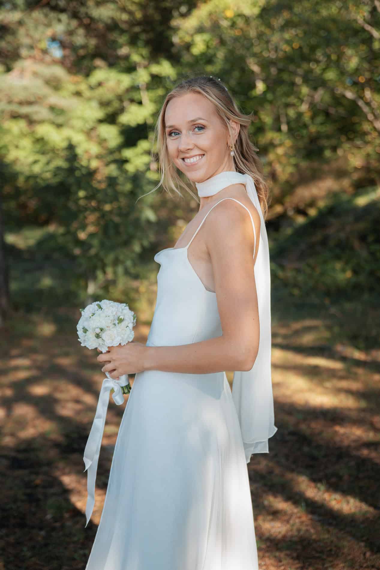 Tips: Legg brudebildene til enten tidlig om morgenen eller et par timer før solnedgang. Da unngår dere høysommerlyset som er hardt og flatt – og dere får det myke, varme lyset som gjør hudtoner og kjoledetaljer virkelig vakre.