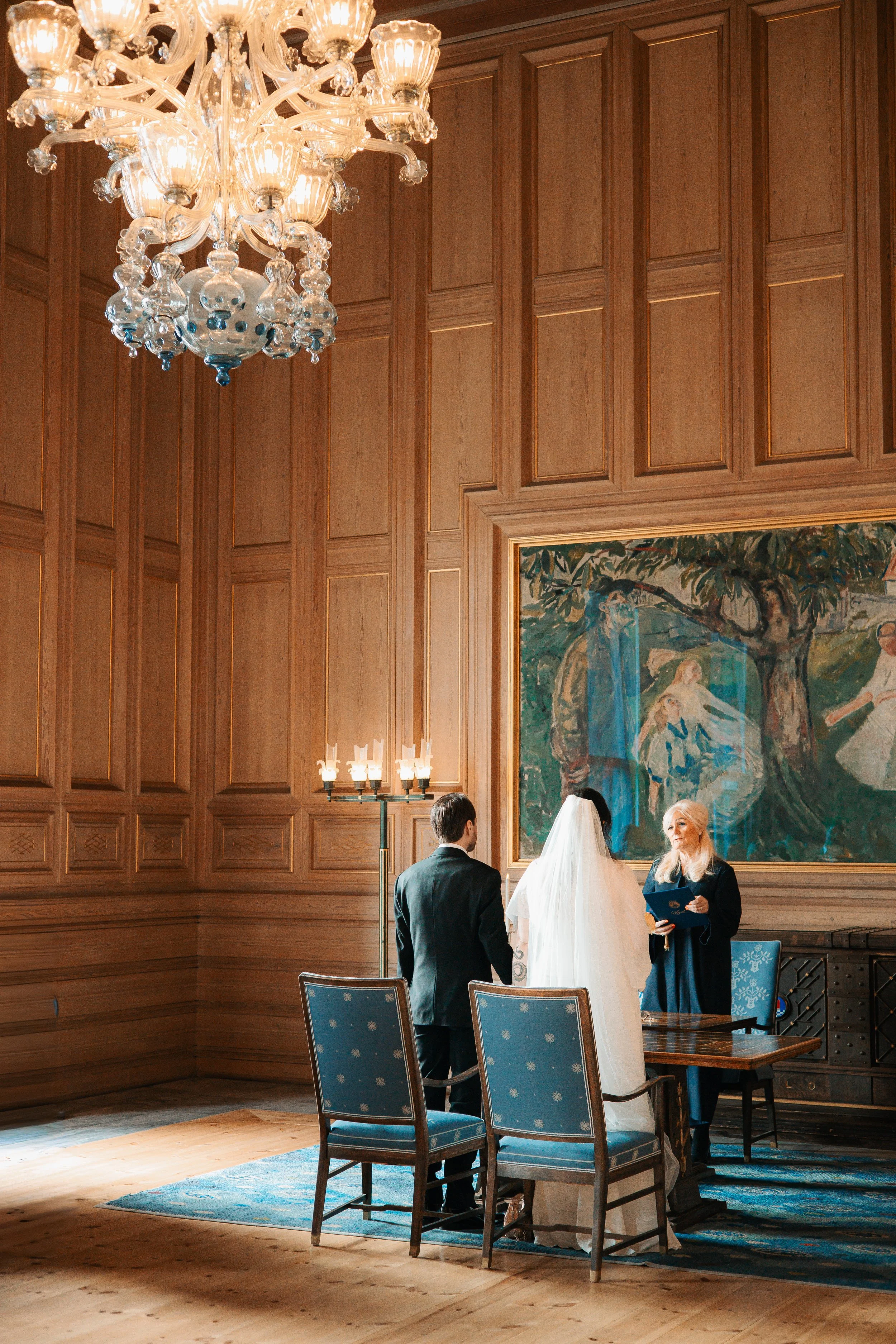 For dere som gifter dere på Oslo Rådhus og ønsker å forevige den store dagen på en enkel, men likevel stemningsfull måte. Denne pakken gir dere det viktigste – fra selve vielsen, noen gruppebilder med familie og venner, og en liten portrettfotografering i Oslos gater.